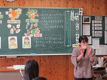 高千穂小学校の栄養教諭の先生にお越しいただき、小学1年生の教室で「食に関する授業」をしていただきました。テーマは「元気に過ごすための食べ方」でした。1年生が考えやすいように絵をたくさん使っての説明でした。授業の終わりには、この時間に勉強したことのまとめとして、これからどのような工夫をして苦手なものを食べるか一人ずつ発表しました。