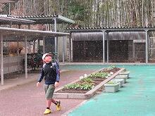 2時過ぎには青空も見え、小学1年生が下校していきましたが、3時前から急に冷え始め、雪が降り始めました。今は強い風も弱まり雪も止んでいます。もうしばらくすると修学旅行生が帰ってきます。