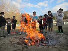 焼き芋は運動場の端に穴を掘り、そこに木と落ち葉を入れて火をつけ、火が弱まったところでぬれた新聞紙とアルミホイルでくるんだサツマイモを入れて焼きました。今日の焼き芋のために、子どもたちは校庭の落ち葉も集めていました。
