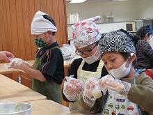 焼き芋が焼き上がるまでの時間、小学1・2年生は生活科の授業で「ふかし芋の茶巾絞り」を作りました。子どもたちはピーラーを使ってサツマイモの皮をむくところからしました。