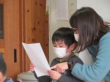 おひっこしのとちゅうに、友だちがきました。そして、家の中を見せました。すると、「わあ、大きな家だね。」と言ってくれました。ぼくは、うれしかったです。広い家に友だちをいっぱい呼んで、あそんだら、楽しくなりそうです。