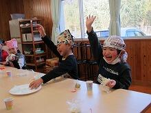 できあがった後は、みんなで一緒に美味しく食べました。食べる前の台拭きや準備、そして後片付けなどもみんなで協力してできました。