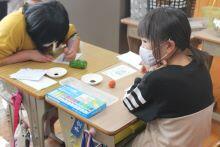 小学校には「ロングクラブ」の時間があります。物作りクラブでは、プラ板にペンで絵を描き、それをオーブントースターで温めてキーホルダーを作っていました。手軽にできるキーホルダーづくりを子どもたちは楽しんでいました。