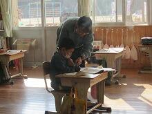 授業中の小学生のようすを紹介します。学級によって教科や活動内容は違いますが、どの子どもも一生懸命授業を受けていました。授業は、子どもたち一人一人を見て指導したり、興味を持つような工夫やわかりやすくするための工夫をしたりしたものでした。