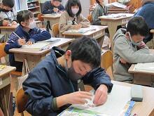 小学3年生の教室では、教科書にある算数の練習問題を一生懸命解いていました。2学期の振り返りと併せて、3年生の内容をしっかり確認し、4年生に向けた「学びの確認」をしていました。集中して問題を解いている子どもたちに感心しました。