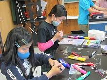 小学校には「ロングクラブ」の時間があります。物作りクラブでは、プラ板にペンで絵を描き、それをオーブントースターで温めてキーホルダーを作っていました。手軽にできるキーホルダーづくりを子どもたちは楽しんでいました。
