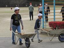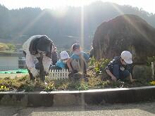 今日は地域の方にお越しいただき、小学1・2年生がパンジーやビオラ、キンギョソウ、ノースポールなどの花の苗を一緒に植えました。1時間目の活動でしたが、皆様のご協力で早く終わり、残った時間は除草作業や落ち葉掃きまでしていただきました。