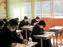 一昨日からの3日間、中学生は「校内テスト」を受けました。みんな真剣な表情で問題を解いていました。中学3年生の国語のテストでは、長い説明文を読んで答える問題もありました。国語に限らず、最近の入試では、長い文章を読んだり、グラフや資料を読み取って答える問題が多くなっています。日頃から本や新聞を読んでおくことが大切です。上野小・中学校では、今月は読書月間としています。自分の考えや視野を広げるために本を読む習慣をつけてほしいと思います。