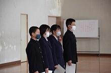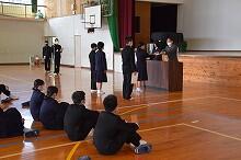 任命式は選挙管理委員会が運営を行い、旧執行部には校長が、旧全校専門委員長・副委員長には旧生徒会長がそれぞれ感謝状を贈りました。3年生の役員は1年間の活動を振り返り、あいさつをしました。
