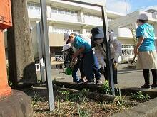 朝の「植栽活動」に続き、今日は「玄武タイム」の活動として全校児童・生徒で「植栽活動」を行いました。小学1・2年生は中学生と一緒にプランターに植えました。小学3・4・5・6年生は一人一鉢ずつ花の苗を植え、植えた鉢は自分たちの教室横のベランダ-に置き、自分で水やりや花がら摘みをしていきます。花の管理を通して、やりがいを感じさせたり、人や植物・動物などへの思いやりや優しさをもった人に育ってほしいと思います。