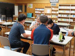 本校では、小学3・4年生が棒術、中学1・2年生が上野臼太鼓踊り、中学3年生が神楽に取り組んでいます。秋の文化発表会に向けてこれから練習が始まるので、指導者の方と職員で、各学年の練習計画を話し合いました。