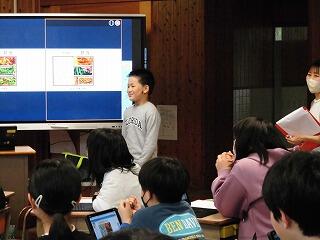最後に、自分たちが作ったお弁当の中身にあった「○○○弁当」とつけて、発表をしていきました。そこには、色とりどりで、バランスの取れた美味しそうなお弁当ができあがっていました。実際にお弁当の日にチャレンジしたい料理も紹介していました。