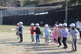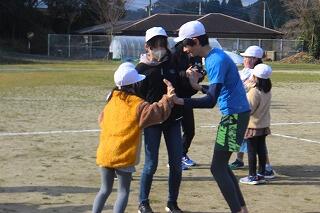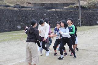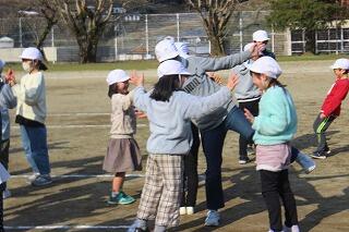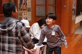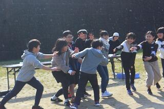 猛獣狩りでは、人数がそろわなかったグループには先生方も参加しました。集まったグループ内で手押し相撲や、ジェスチャーゲーム、じゃんけん列車もあり、様々なゲームを楽しみました。