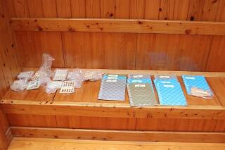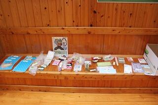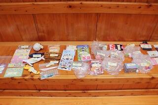 ノートやシール、メモ帳などたくさんの豪華景品が家庭科室前廊下に並んでいました。