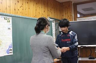 卒業記念品「木製しおり」贈呈式