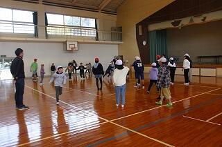 前日の雨の影響で、1・5年生は武道場、2・3・4・6年生は上野体育館で実施しました。