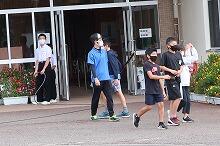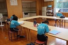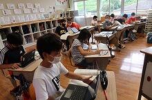8月25日金曜日。今日で夏休みが終わります。夕べから今朝に駆けて降った雨が残っていて、テニス部の生徒は朝からコートの整備などをしていました(たまっていた水が多かったため、旧上野小学校体育館で練習しました)。t図書館では、今日も朝から英語暗唱・弁論大会に向けて出場する生徒が練習していました。