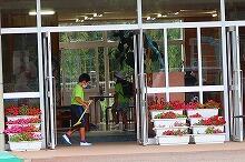 給食調理員の先生方は、給食室内外の掃除をされていました。