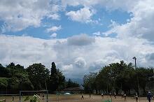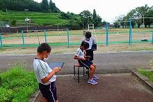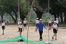2学期が始まり、朝夕は涼しくなり過ごしやすくなりましたが、日中は暑さを感じます。今朝の上野は晴れていて、運動場では小学3・4年生がポートボールをしていました。