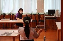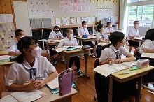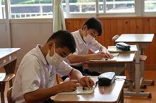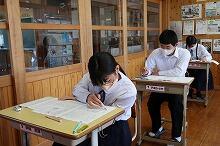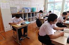 校舎3階の中学生の教室では、校内テストを生徒が受けています。