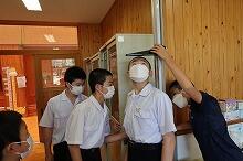 校舎内では消防関係の機器の点検や防火シャッターの調整が行われました。