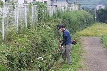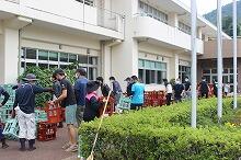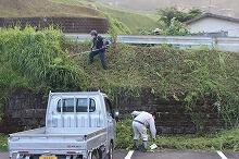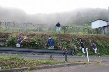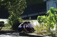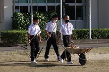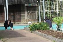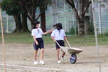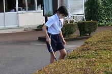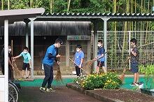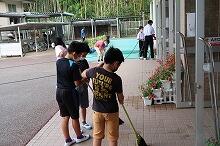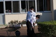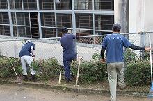 部室棟の片付け(中学1・2年生)、花壇の草取り(小学4年生)