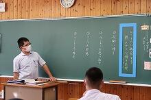 図書館では9月に開催される「西臼杵郡中学校英語暗唱弁論大会」に出場する生徒がALTの先生や本校の英語の先生の指導を受けていました。上野中学校からは、暗唱の部に2名、弁論の部に1名の生徒がそれぞれ出場します。