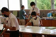 また校舎内では、明日からの2学期に向けて掃除や机の消毒、タブレットパソコンの調整などをしている先生たちの姿がありました(上野小・中では、夏休み中も毎日20分程度の清楚を先生たちはしていました)。