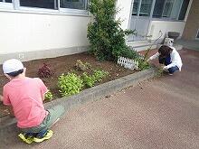また、校長室前の花壇では小学4年生が担任の先生と一緒に草取りをしていました。ありがとうございます。