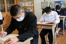 今日と明日は、来春、高校入試を受ける中学3年生が「地区実力テスト」を受けます。3年生の教室には、問題を必死に解いている受験生の姿がありました。
