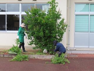 5月12日(日) 数日前から雨予報が出ていましたので、この日は児童生徒は参加せずに保護者・教職員による作業を行いました。