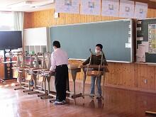 小学6年生はこの時間に玄関の掃除を毎日してくれます。中学生は教室で勉強中です。