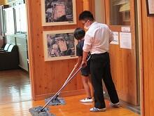 上野小・中学校には「上野流清掃の心得」があります。その内容は「床をみがき 汗を流して 心を洗う これ即ち 洗心なり」というもので、子どもたちは清掃前にこの「清掃の心得」を黙想をしながら聞きます。