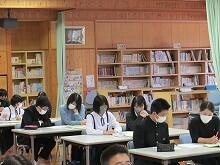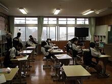 校舎内をまわってみると、図書館で本を借りている子どもや教室で遊んでいる子どもたちの姿がありました。中学3年生の教室では、勉強している”受験生”の姿もありました。校舎内をまわりましたが、廊下を走ったり教室で騒いでいる児童生徒はいませんでした。