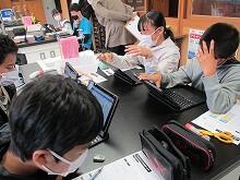 上野小・中学校では、子どもたちの学力向上のために、”職員による相互参観授業”を行っています。今年度は校内研究として「一人一台タブレットなどのICTの活用」に取り組んでいます。今回は小学6年生の授業で、プログラミング学習でした。
