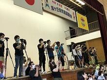 小学生は、午前中の授業で団技や表現、徒走の練習をしました。中学生は放課後、先生たちと一緒に、明日から始まる全体練習に向けてテントの設営を行いました。