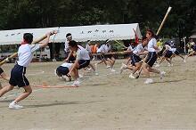 団技やリレー、徒走、綱引きのようすです。綱引きは小学1~3年生、4~6年生、中学生に分けて行うことで間隔を取り、それぞれ1本勝負で行いました。