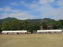 小学生は、午前中の授業で団技や表現、徒走の練習をしました。中学生は放課後、先生たちと一緒に、明日から始まる全体練習に向けてテントの設営を行いました。