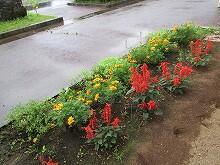 一つは、小学校1・2年生と本校職員、さんさんクラブ会員、民生委員、社会福祉協議会職員の皆様とで実施した「花壇清掃活動」です。このときの写真が表紙を飾っています。