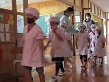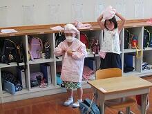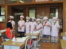 小学1年生も2学期から給食当番をしています。給食着を着ることにもまだ慣れていないので、当番の準備からまず始まります。給食室から自分たちで給食を運び、慣れない手つきで器についでいました。今日が2日目でしたが、子どもたちはがんばっていて、予想よりもうまくできていたと思います。子どもたちだけでの配膳はまだできませんが、2学期が終わる頃にはうまくなると思っています。