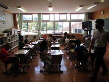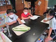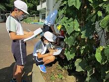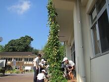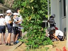 小学4年生は1学期の理科の時間にヘチマを植えました。夏休みも成長し、職員室のグリーンカーテンになっています。今日の授業では成長したヘチマと、ヘチマの実を観察しました。興味深そうに観察したり、先生の問いかけに素朴な疑問や自分なりの考えを発表している子どもたちに感心しました。
