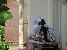 上野小学校と上野中学校では、9月12日(日曜日)に小中合同で運動会を実施します。エイサーや棒術などの一部の種目は1学期から練習を始めていましたが、今日から本格的に練習を始めました。今日は残暑が厳しく、1日中太陽が輝いていました。子どもたちは先生の指導の下、休憩や水分補給を行いながら練習に励んでいました。5・6年生は練習の終わりに運動場の草取りをしてくれました。