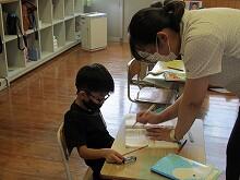 2学期の始まりにあたり、小学生は身体計測を行っています。今日は5年生でした。個人差はありますが、4月に比べ、どの学年の児童も成長しているようです。