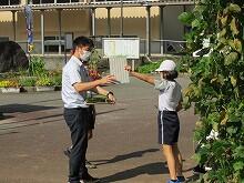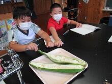 小学4年生は1学期の理科の時間にヘチマを植えました。夏休みも成長し、職員室のグリーンカーテンになっています。今日の授業では成長したヘチマと、ヘチマの実を観察しました。興味深そうに観察したり、先生の問いかけに素朴な疑問や自分なりの考えを発表している子どもたちに感心しました。