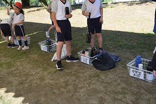 それぞれの団のテントには、学年ごとに水筒入れが準備されています。水分補給は必ず行います。