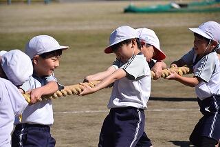 少し変わった競技ですが、綱引きをしながら玉入れをします。