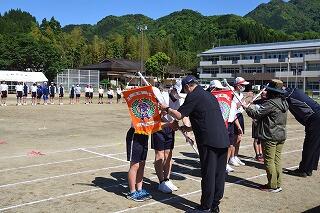 優勝したときに旗を受け取る練習は,どの団も行いました。