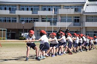 綱を引く力と玉を入れる技能が必要な競技でした。優勝した団には優勝旗が贈られます。