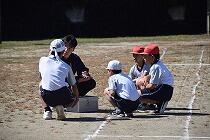 次に、運動会当日に役員として活動する児童生徒のための役員指導です。担当の先生と打ち合わせをしました。