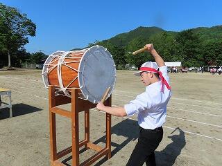 エール交換の入場は、実行委員長の太鼓の合図で行われました。